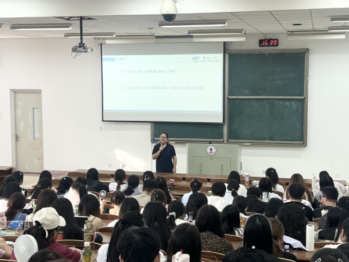 课堂上,汪燕凭借深厚的一线教学经验,摒弃纯理论的枯燥讲解,从小学语文课堂的真实场景切入,结合苍梧小学近年来开展的故事创编、角色扮演、汉字探索等活动课程案例,用通俗语言拆解“小学语文活动课程”的核心内涵,生动诠释了该课程不是简单的“活动+课程”,而是让语文知识融入学生可参与、可体验的场景,引导学生在“做中学”“玩中学”,最终实现语文知识的内化与能力的提升。同时,针对当前师范生在活动课程设计中易出现的“重形式轻内容”“脱离学生认知水平”等问题,汪燕结合自身设计实例,详细阐释应如何平衡“趣味性”与“语文性”,进而设计出以学生为中心、活动形式多样的小学语文活动课程,让抽象的“课程设计”变得可触、可感、可学。