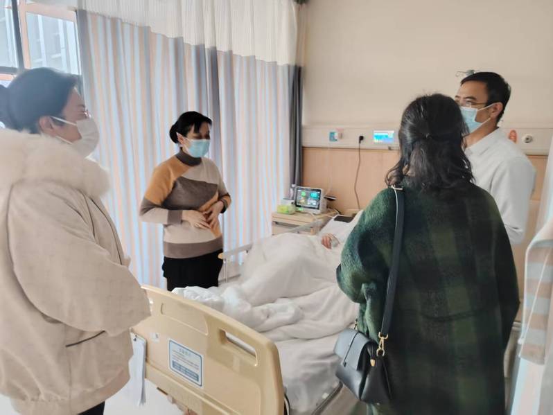 在病房中,老师们送上慰问品,与家长亲切交谈,详细询问应同学的病情诊断、治疗方案及相关注意事项。随后,老师们问候该同学的身体与精神状态,鼓励他放下学业顾虑,保持乐观心态,积极配合治疗。