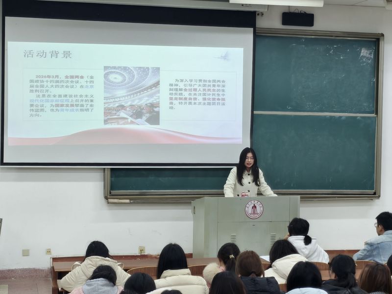 活动设置多个环节,推动两会精神学习走深走实。在“我眼中的两会关键词”分享环节,团员们踊跃发言,结合自身学习和生活实际,围绕民生保障、青年就业、教育公平、乡村振兴等热点话题畅谈理解与体会,在讨论交流中进一步加深对两会精神的认识与思考。随后,全体团员共同观看2026年全国两会学习视频,系统了解两会主要内容与时代背景。视频结束后,现场开展基础知识抢答,团员们积极作答,现场气氛热烈。最后,两会金句填空抢答环节将活动推向高潮,大家在比拼中巩固所学知识,增强对两会精神的理解与记忆。